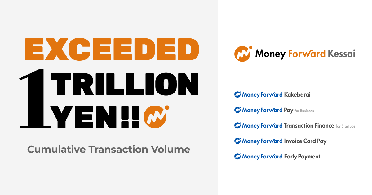 Money Forward Kessai, Inc.is pleased to announce that the cumulative transaction volume of its various services has surpassed 1 trillion yen.