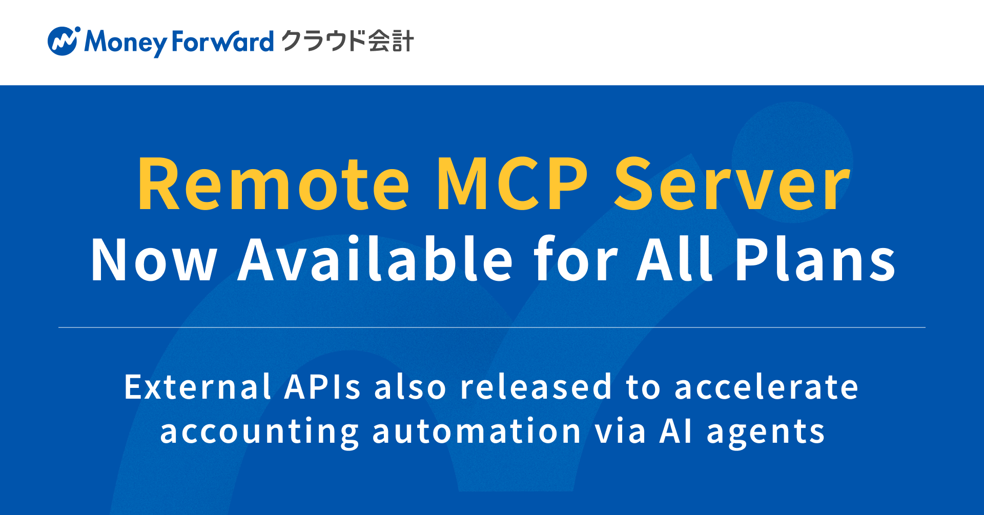 Money Forward is now releasing the MCP Server and APIs — which were previously available only to select users — to all users across all plans. This will enable seamless data integration and autonomous task processing by AI, supporting the enhancement of back-office efficiency.
