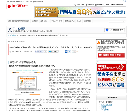 DREAM GATE「ものぐさな人でも続けられる!家計簿を自動生成してくれる大人気アプリ「マネーフォワード」 – DREAM GATE」にて当社家計簿サービスが紹介されました。