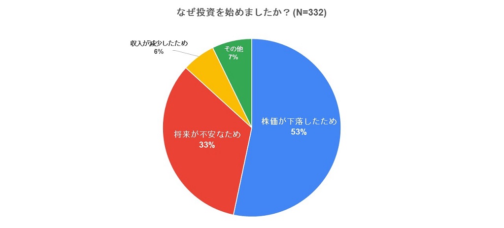 新型コロナウイルスによる株価下落が、投資を始めるきっかけとなったことが考えられます。