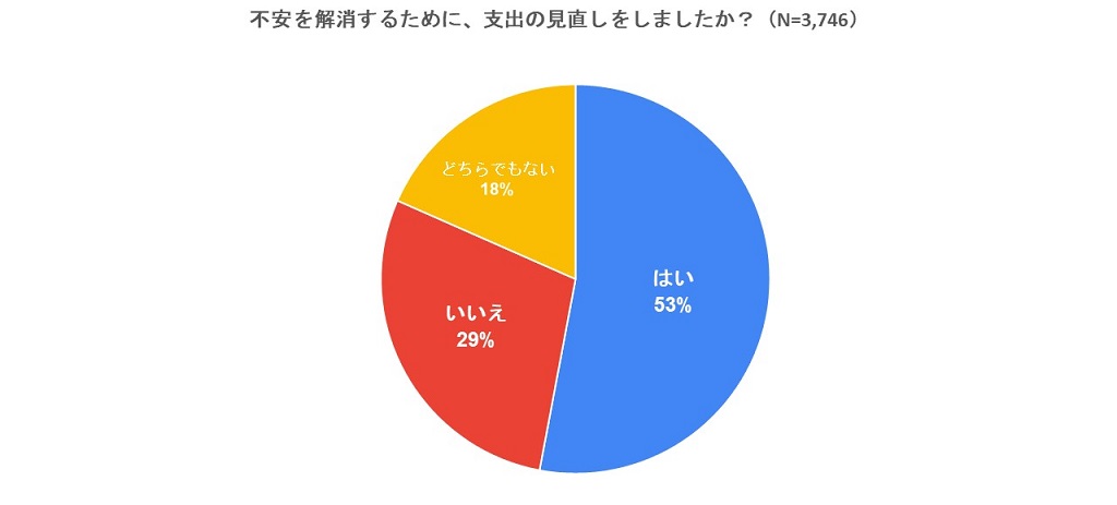 2.お金に不安を感じると回答した人の約半数が「支出を見直した」と回答