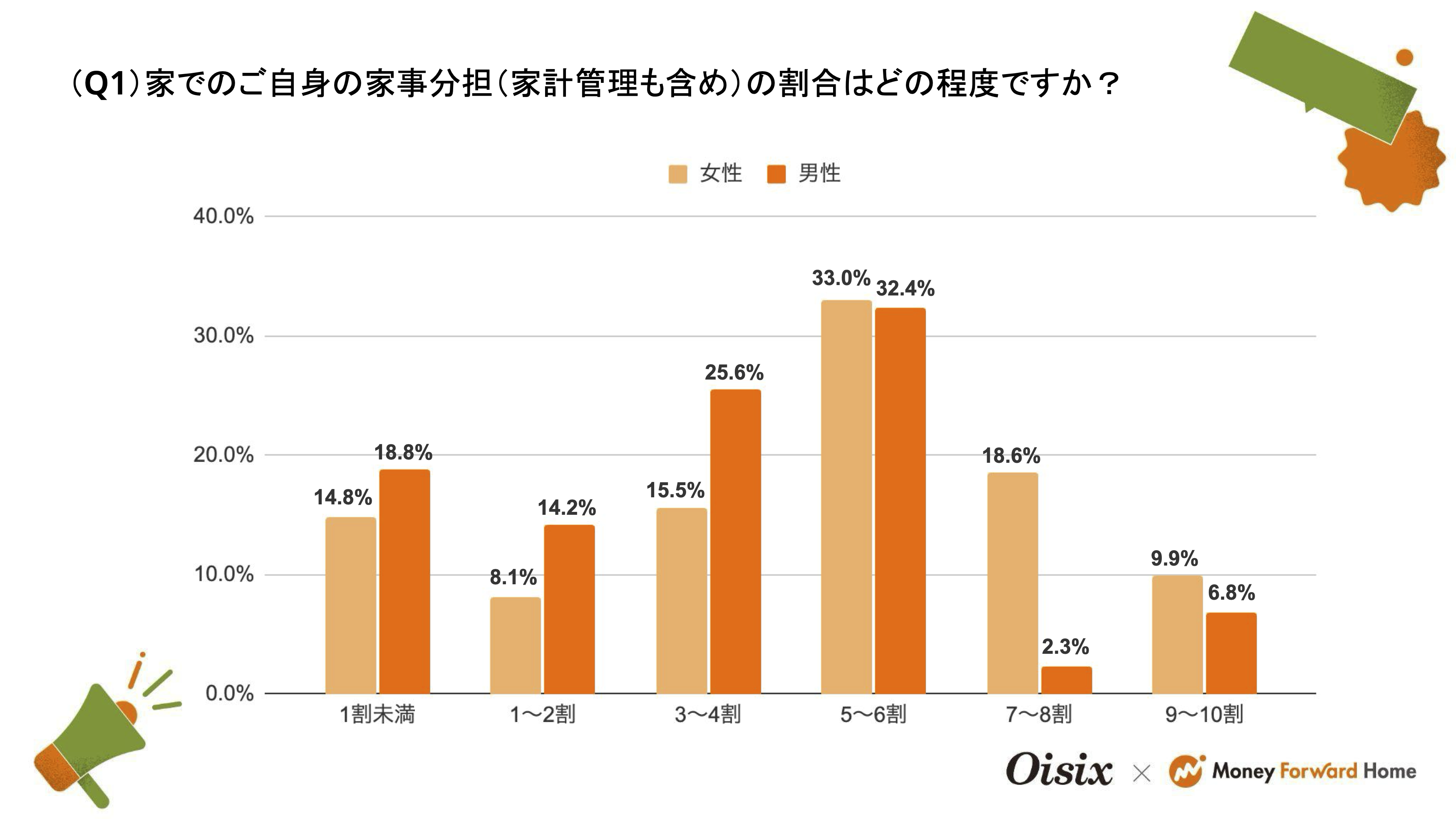 画像:Q1 ふたりの家事分担(家計管理含む)の割合